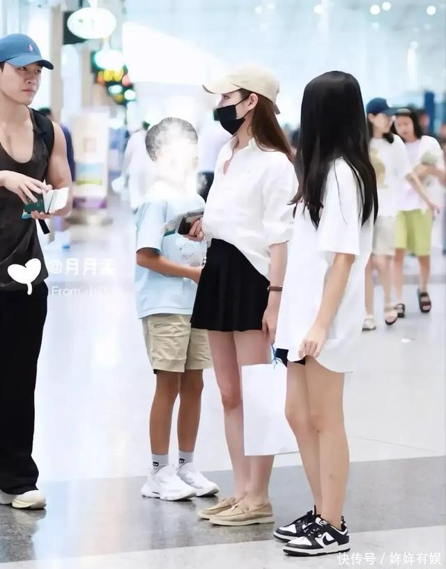 汪希玥穿短裤现身机场,秀出雪白大长腿,小朋友清纯可爱,长得太像妈妈了。